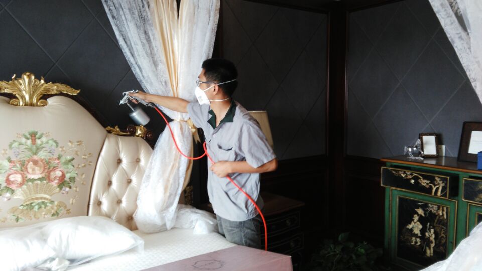 治理方案及施工:針對其房屋結構特點、污染情況,我公司技術及施工人員采用了非常精密的施工方案,針對其墻面、床墊、沙發(fā)、窗簾、布藝家具使用我公司研發(fā)的利純光觸媒進行甲醛清除,這些地方光照量較充足,便于光觸媒對甲醛的分解,且光觸媒性溫和,不會對這些產品造成危害,對于刷漆的家具、書桌、衣柜、木門等采用甲醛清除劑進行處理,甲醛清除劑是我公司針對家具中甲醛特別研發(fā)的產品,對家具中甲醛、苯、等產品效果良好,甲醛對兒童、老人的危害最為嚴重,老人因為抵抗力差,而兒童卻是因為身體防御系統(tǒng)不夠健全,且呼吸頻率比成人高,所以我們針對兒童房做了重點處理,對業(yè)主家的兒童房做重點處理,針對不同污染物,做分別處理。為業(yè)主清理甲醛,還業(yè)主一個安全,健康的生活環(huán)境是我們全體工作的責任,下面為施工現(xiàn)場照片: