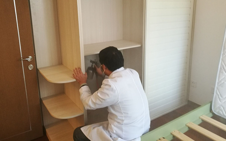 使用藥劑及施工方案: 主要藥劑有甲醛消除劑、納米光觸媒。根據(jù)這套房子室內(nèi)裝修情況,對于集中定做的柜子和抽屜,我公司施工人員使用甲醛清除劑對柜子和抽屜進(jìn)行全面噴灑,重點(diǎn)治理,施工時(shí)保證全面均勻、不留死角,另外對墻面和沙發(fā),坐墊窗簾等布飾使用光觸媒治理,在分解污染源的同時(shí),增加光觸媒的受面,能分解游離的甲醛其他污染物,下面為施工現(xiàn)場照片:
